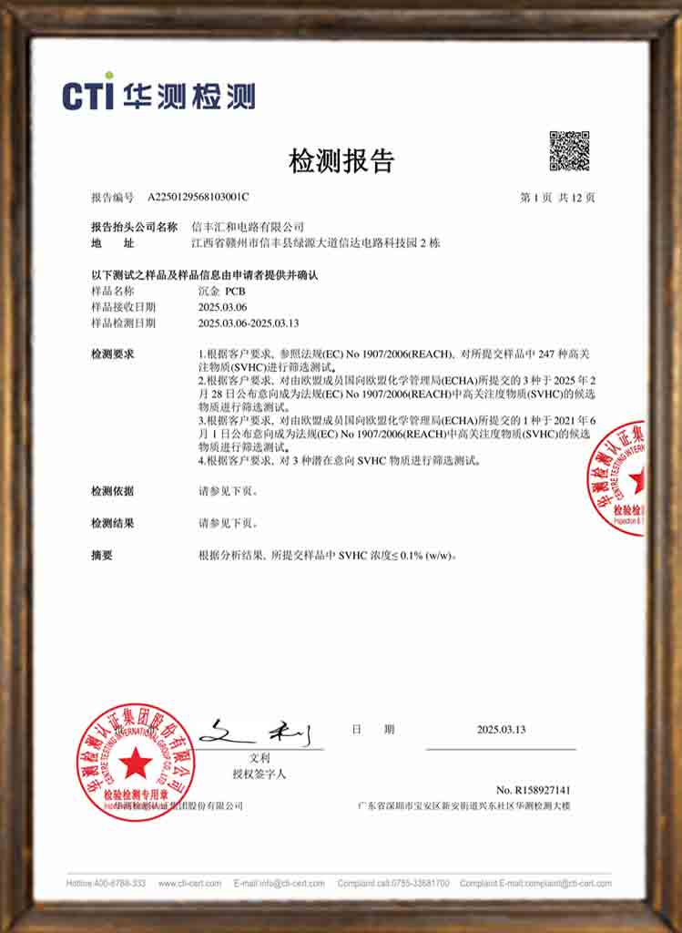产品已通过UL/CUL、CQC、RoHS(沉金)、REACH(沉金)、PFAS(沉金)、POPs(沉金)检验测试